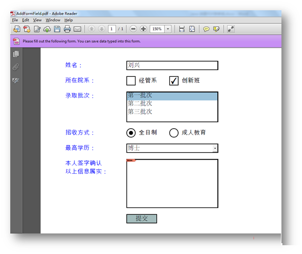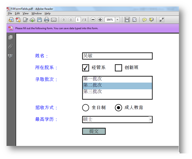 1.创建并填充PDF表单域