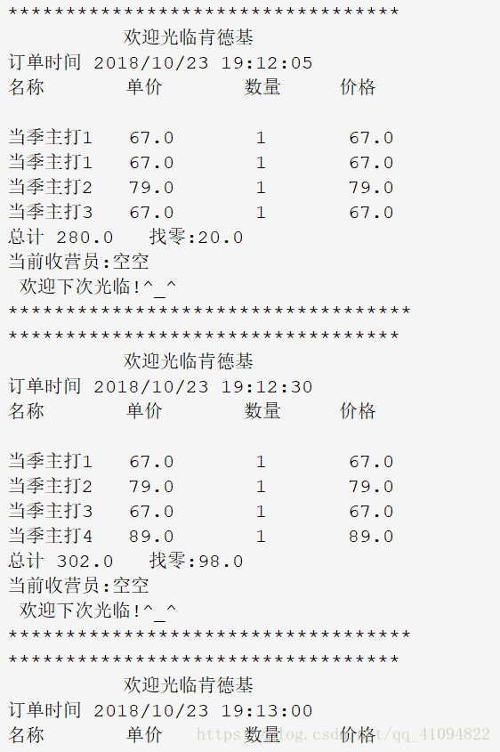大家应该都去麦当劳或肯德基吃过快餐,参考肯德基官网的信息模拟肯德基快餐店的收银系统,简单的java Gui模拟的肯德基收银系统。