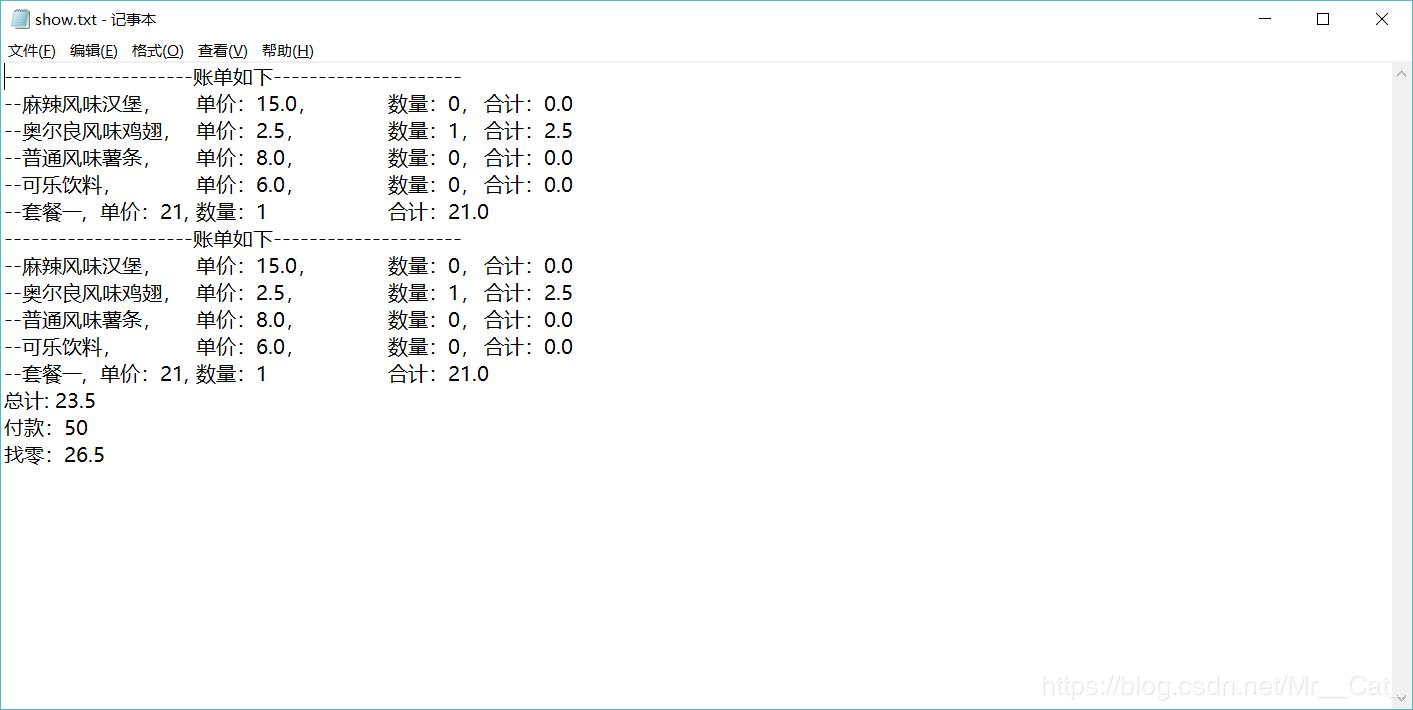 5.模拟打印小票的功能(写到文件中)。
