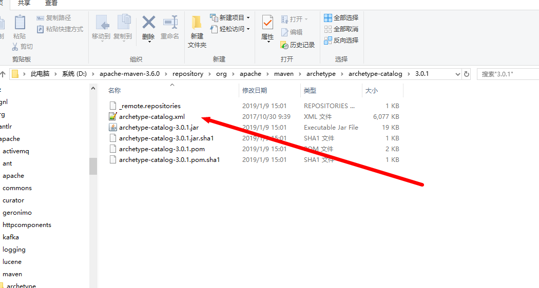 那么catalog文件就可以放在 D:\apache-maven-3.6.0\repository\org\apache\maven\archetype\archetype-catalog\3.0.1下