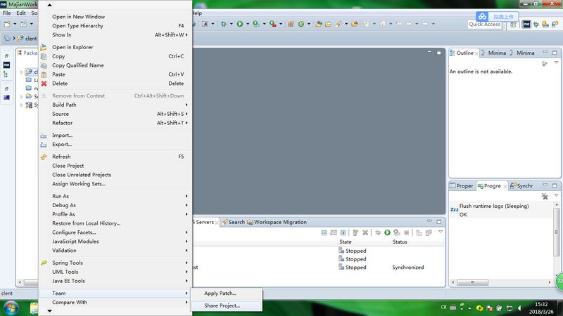 右击项目;选择Team;选择Share Project;