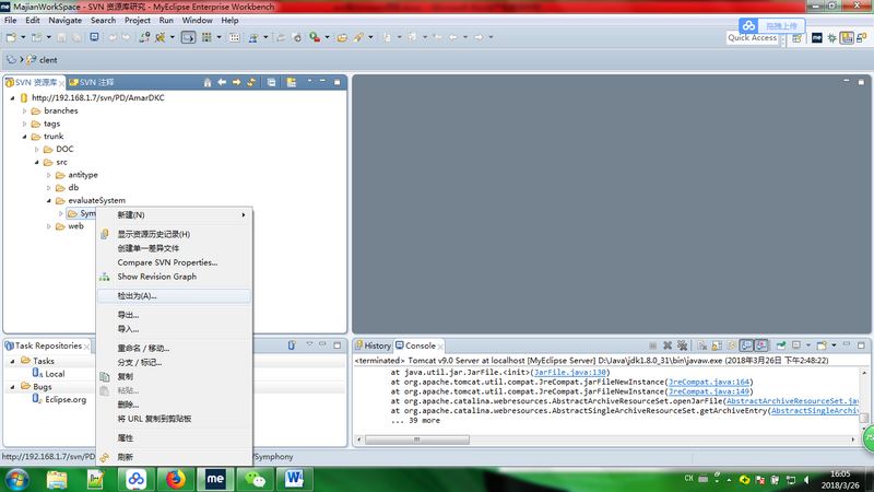 在svn资源库中选中要导出的maven项目。然后右击选择 检出为。