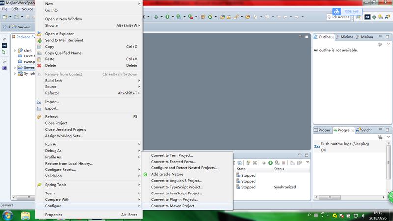 选中项目然后右击 选择 configure 下的 convert to Maven Project。