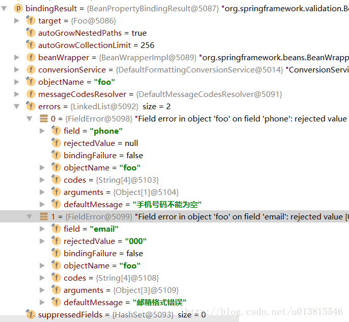 <2> 校验结果会被自动填充,在controller中可以根据业务逻辑来决定具体的操作,如跳转到错误页面。