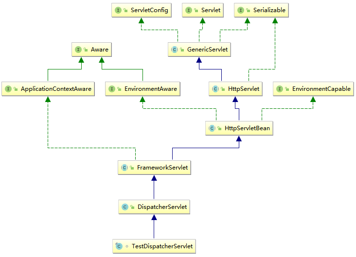 DispatcherServlet就是所谓的SpringMVC前端控制器,作为整个SpringMVC的控制中心,,其相关UML如下所示: