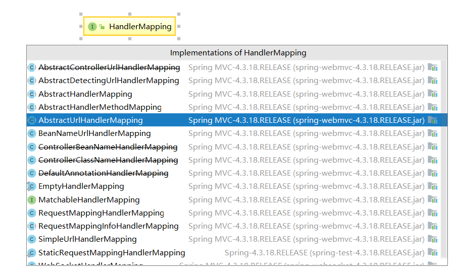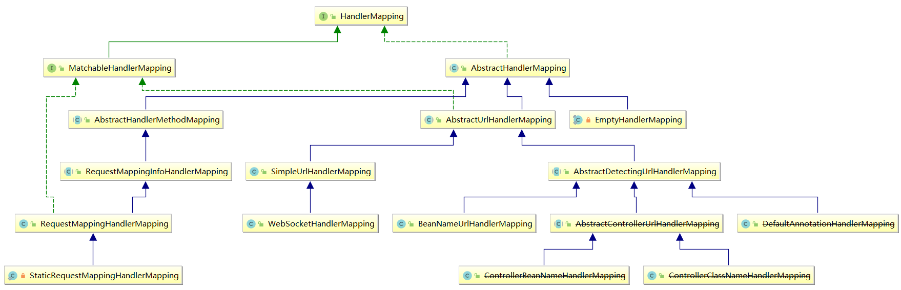HandlerMapping主要用来解析请求url,解析出控制器,从而映射控制器,其相关类有16个。