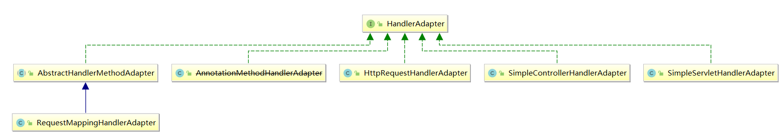 HandlerAdapter主要是调度Controller来处理业务逻辑等,想相关类有6个。