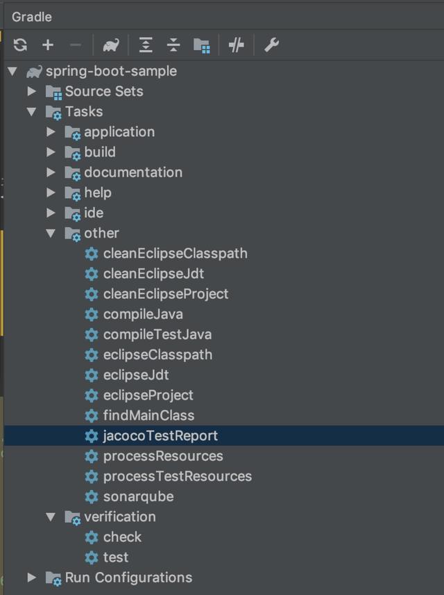 或者可以再Gradle的工具菜单中Tasks -> other -> jacocoTsestReport可以直接启动单元测试的分析。
