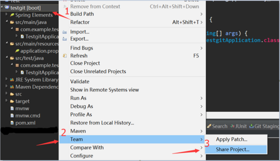 选中要发布的项目 --> 右击 --> Team --> Share Project... ,