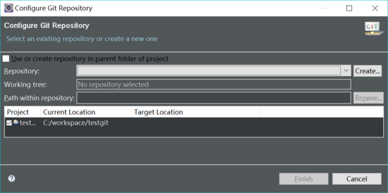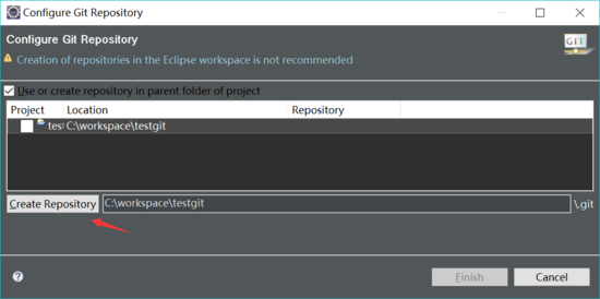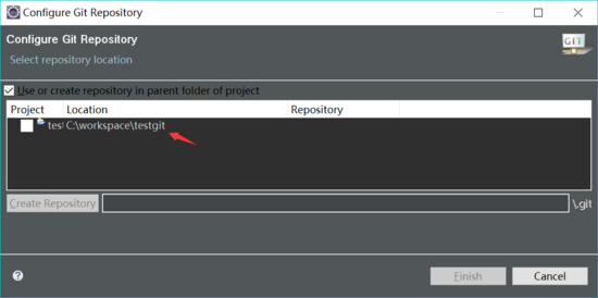 点击 Create Repository 按钮,会在后面显示的路径下建立本地仓库,最后点击Finish按钮即可。效果如下: