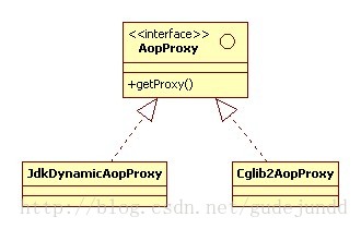 Spring通过AopProxy接口,抽象了这两种实现,实现了一致的AOP方式: