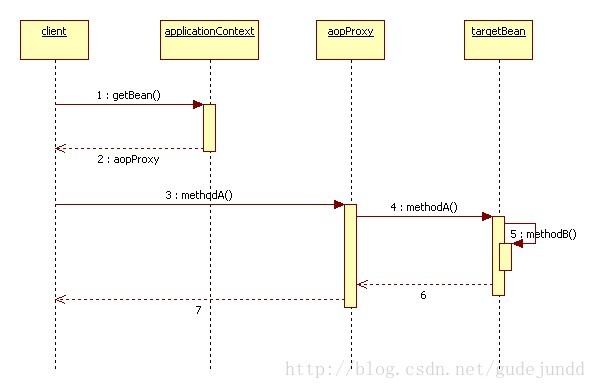 因此,从上面的分析可以看出,methodB没有被AopProxy通知到, 导致最终结果是: