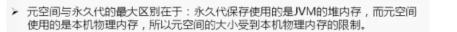 元数据区取代了永久代,本质和永久代类似,都是对JVM规范中方法区的实现,区别在于元数据区并不在虚拟机中,而是使用本地内存。元数据区在频繁使用,也会发生OutOfMemory异常。