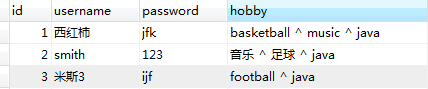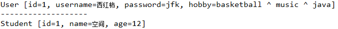private Integer id; private String username; private String password; private String hobby; //getXxx方法和setXxx方法