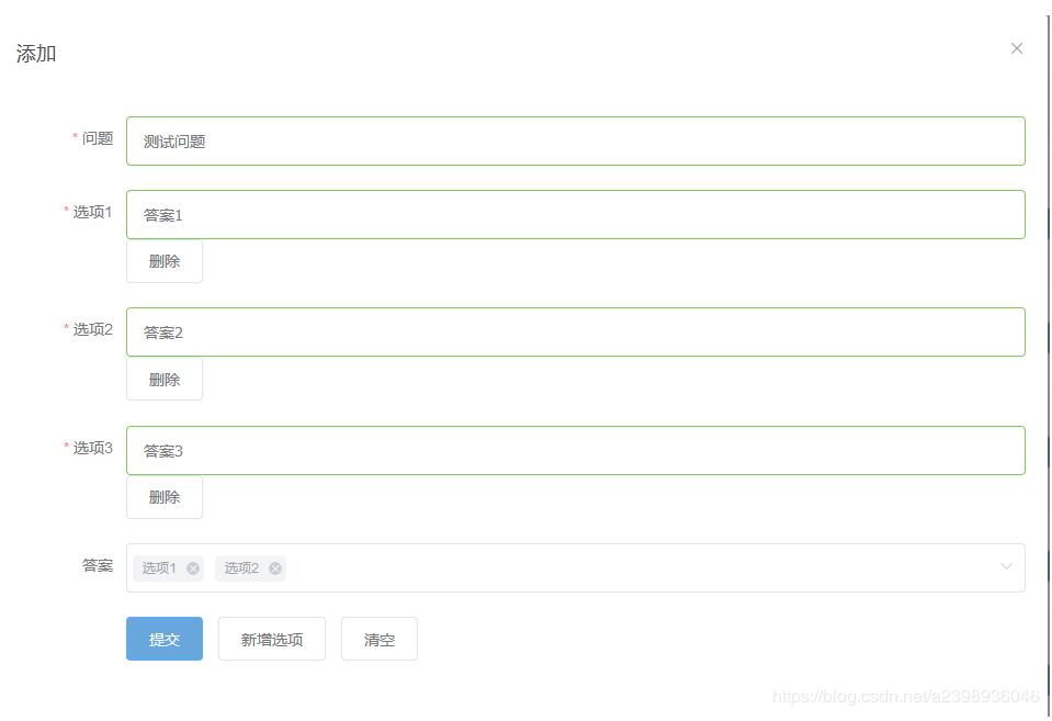 本文为大家分享了java+vue实现添加选择题到题库功能的具体代码,供大家参考,具体内容如下