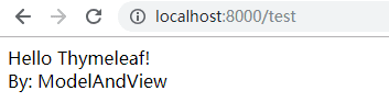 <!DOCTYPE html> <html lang="en"> <head> <meta charset="UTF-8"> <title>Title</title> </head> <body> Hello Thymeleaf! </br> By: ModelAndView </body> </html>