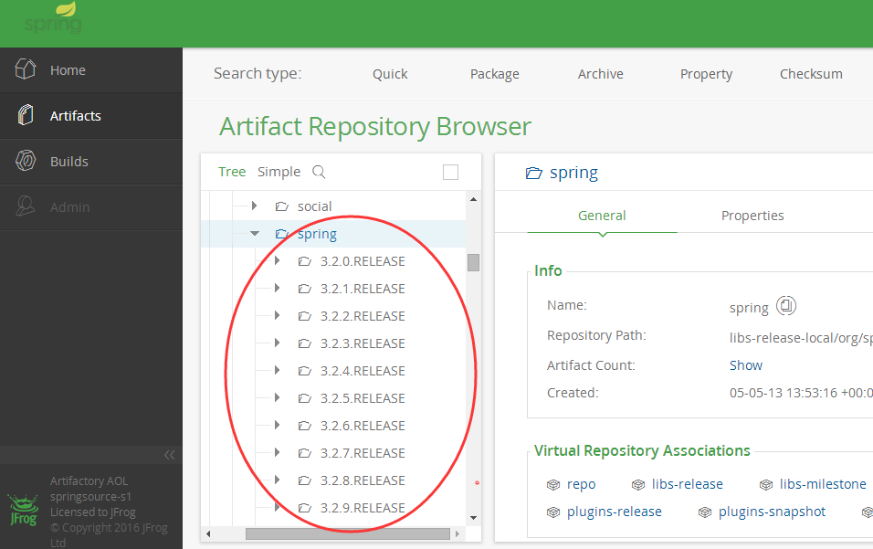 8:依次进入其子目录org/springframework/spring 就能看到spring 各版本信息了。