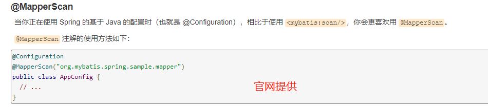 1、创建query方法并使用注解@Select(Mybatis提供,mybatis-spring官网有相关解释)