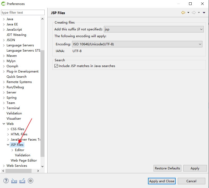 这是在 Eclipse 中设置文件编码,如果是在 IntelliJ IDEA中,则不需要设置JSP文件编码,因为默认就是 UTF-8,只需要提前设置下工程编码即可: