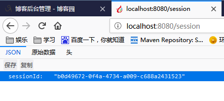 •复制这个工程,application.properties中的server.port=8081,然后访问“http://localhost:8081/get”,如下获取到了另一个工程中设置的session的值。