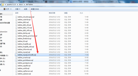 这里采用的Quartz 2.2.3版本,总共11张表,不同版本,表个数可能不同。数据库为mysql,用tables_mysql_innodb.sql创建数据库表。