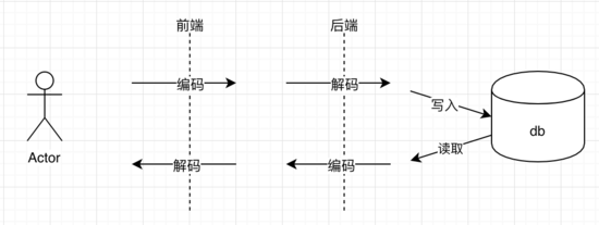 先说下故事的前提,为了防止用户在动态中输入特殊字符,用户的动态都是编码后发到后台,而后台在存入到 DB 表之前会解码以方便在 DB 中查看以及上报到搜索引擎。在查询用户动态的时候先从 DB 表中读取并在后台做一次编码再传到前端,前端再解码就可以正常展示了。流程如下图: