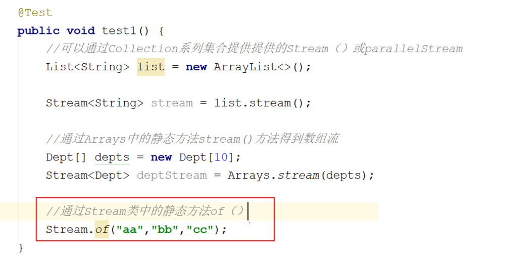 通过Stream类中的静态方法of()Stream.of("aa","bb","cc");