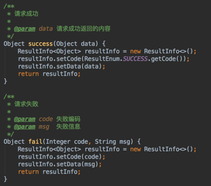 定义一个ResultInfo类,该类只有两个属性,一个是Integer类型的状态码,一个是泛型,用于成功时返回给前台的数据,和失败时返回给前台的提示信息。