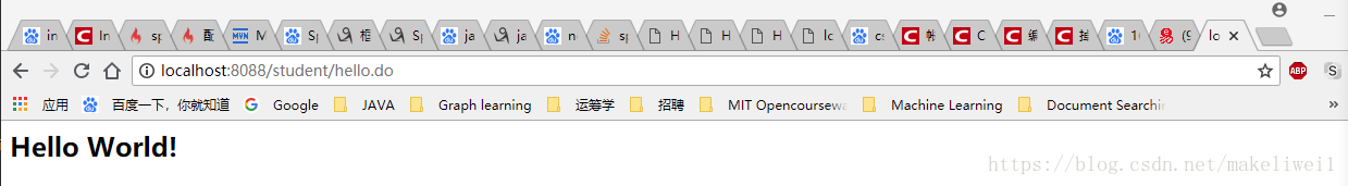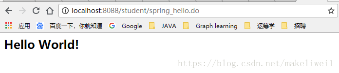 启动服务器,在浏览器地址栏输入http://localhost:8088/student/spring_hello.do,响应如下