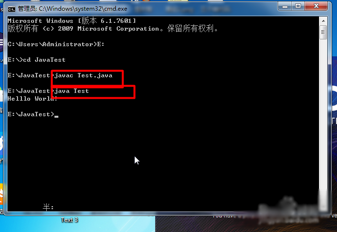 回到命令后台,输入:E: 按回车键,然后在输入:cd JavaTest,按回车键,