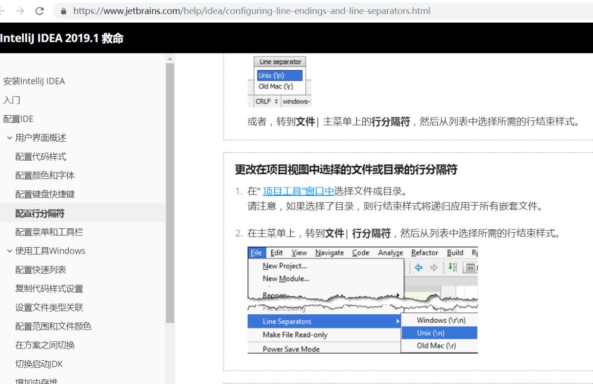 在java项目开发中。最开始换行符大家一般是在idea中设置新文件为LF,并且对旧文件通过IDEA下方的点击来更换换行符。很显然,对于几千文件的旧项目明显是不合理。后来我找到idea的官网文档
