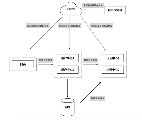 如下图可以构想动态修改标签控制应用所能承接的请求,这里暂时不描述mq部分的功能: