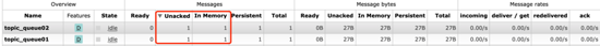 再次查看队列里的消息,发现队列01里的消息被删除了,队列02的还是存在。