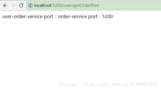 在浏览器访问 http://localhost:5200/user/getOrderPort 通过user-service使用feign声明式调用order-service的接口