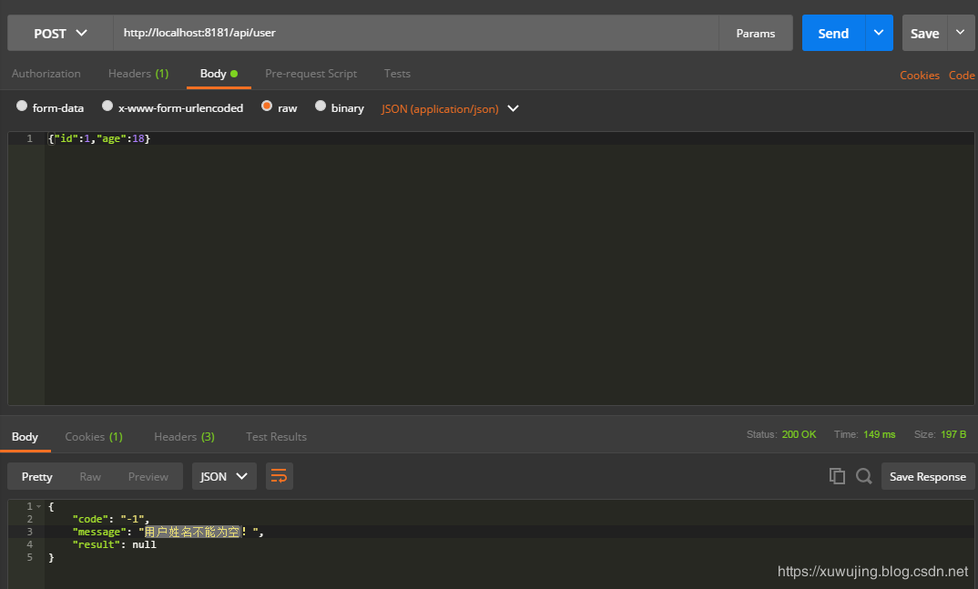 {"code":"-1","message":"用户姓名不能为空!","result":null}