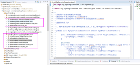 2、上面4个类:DefaultFeignClientsConfiguration.java、DefaultHystrixFallbackHandler.java、DefaultHystrixFallbackHandlerFactory.java、HystrixFallbackResults.java是在项目中具体使用的具体配置