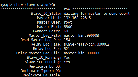 CHANGE MASTER TO MASTER_HOST='192.168.226.5', MASTER_USER='root', MASTER_PASSWORD='123456', MASTER_LOG_FILE='master-bin.000003', MASTER_LOG_POS=154;