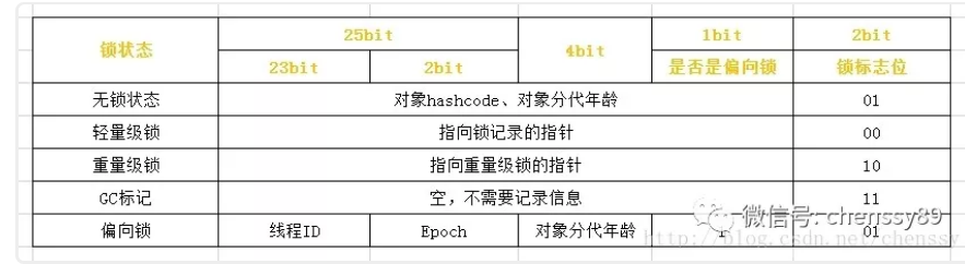 这三种锁是指锁的状态,并且是专门针对Synchronized关键字。JDK 1.6 为了减少"重量级锁"的性能消耗,引入了“偏向锁”和“轻量级锁”,锁一共拥有4种状态:无锁状态、偏向锁、轻量级锁、重量级锁。锁状态是通过对象头的Mark Word来进行标记的: