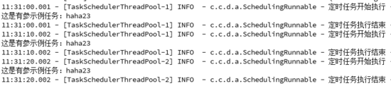 SchedulingRunnable task = new SchedulingRunnable("demoTask", "taskWithParams", "haha", 23);
