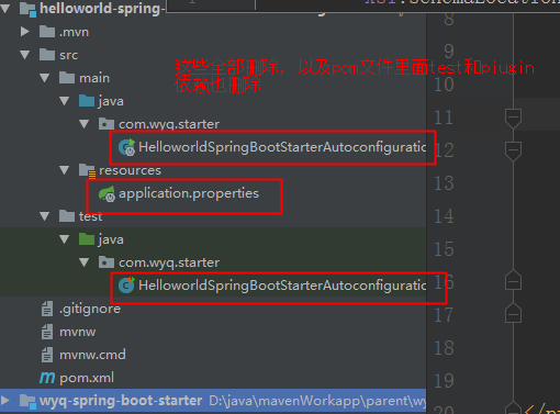 下一步就是在xxxautoconfiguration模块,删除一些没用的东西和依赖,但是一定要保留一个最基本的starter