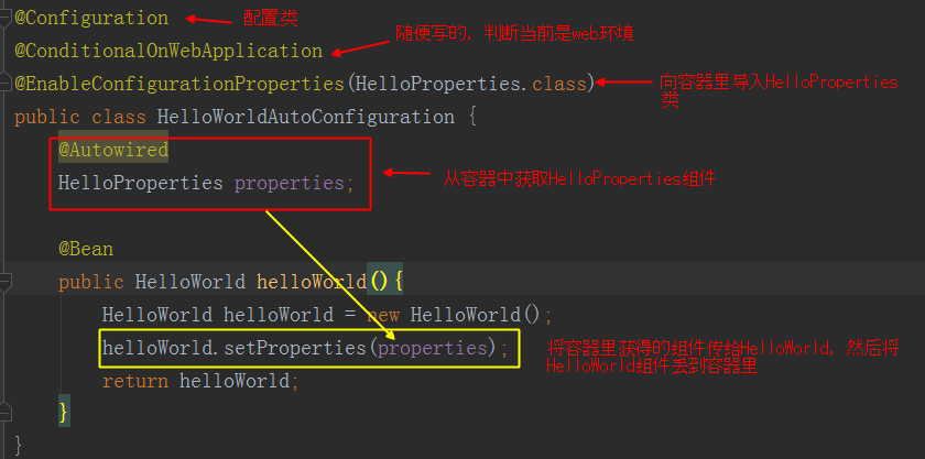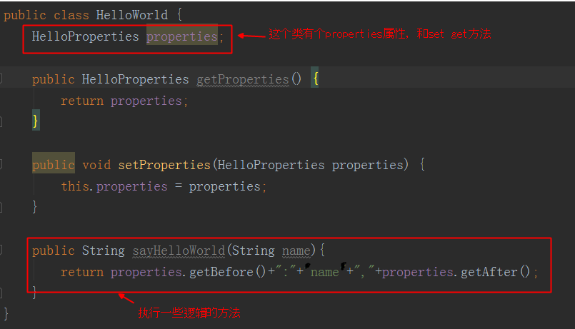 第二个:HelloWorld(记住,此时这个类和properties类还没什么关系,必须要让第三方传入properties)
