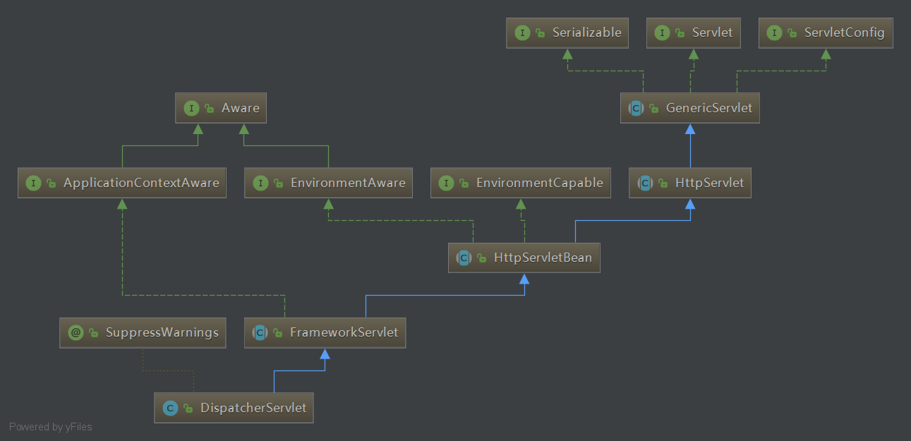 DispatcherServlet是一个Servlet,tomcat启动过程中会调用其init方法,一串的调用后,会调用DispatcherServlet的initStrategies方法