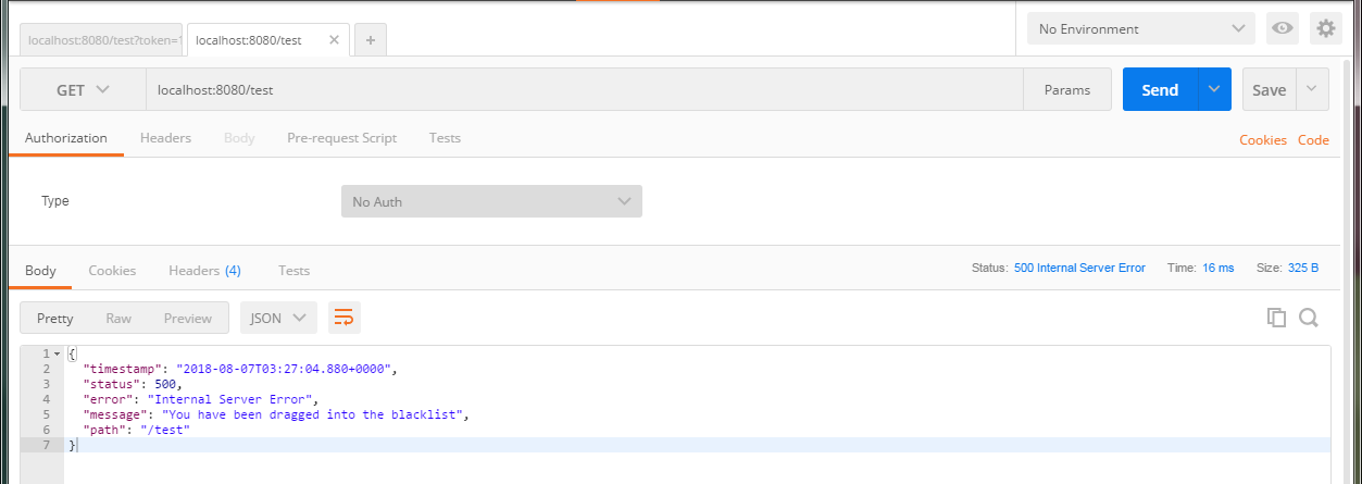 我们在postman中快速访问localhost:8080/test,当访问数超过10时出现以下结果