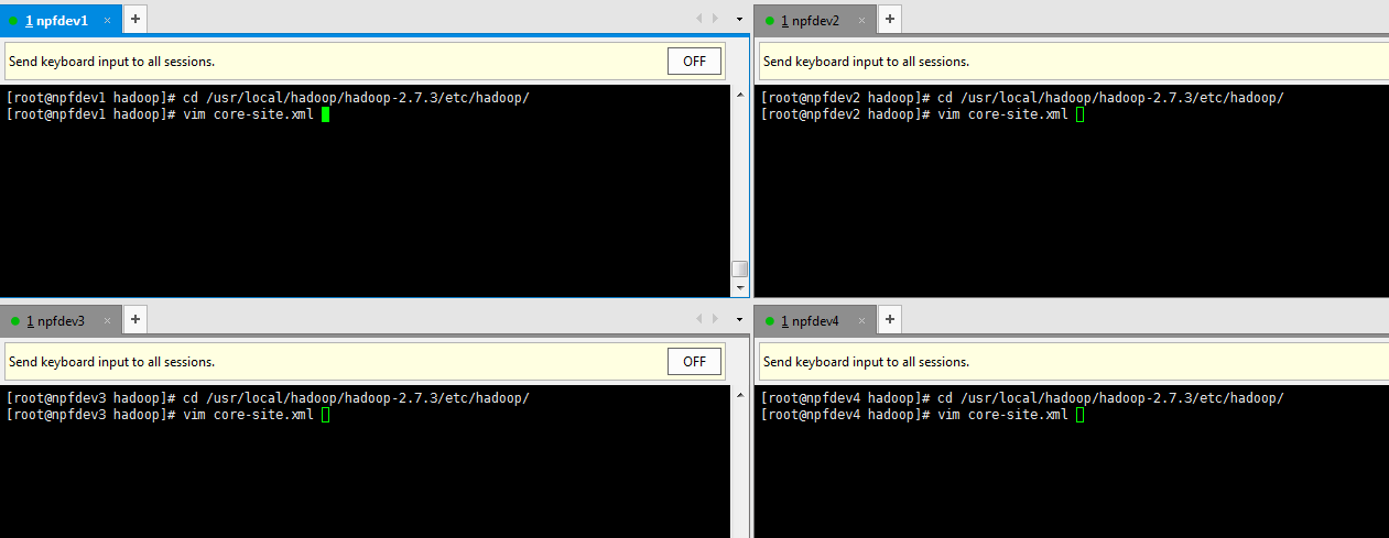 scp -r /usr/local/hadoop/hadoop-2.7.3/ npfdev4:/usr/local/hadoop/