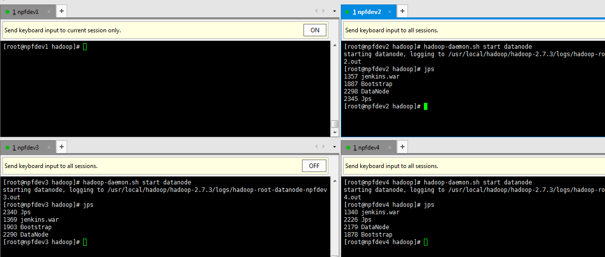 (3).在slave机器npfdev2,npfdev3,npfdev4上启动datanode