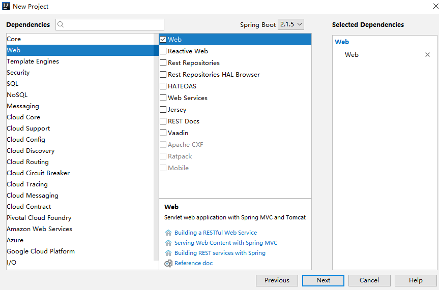 创建一个 Spring Boot 项目,只需要添加 Web 依赖即可: