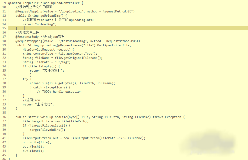 第二步骤:主要功能实现。springboot默认是集成springmvc,使用springboot和直接使用springmvc上传是一样的。springboot默认是集成springmvc,使用springboot和直接使用springmvc上传是一样的。