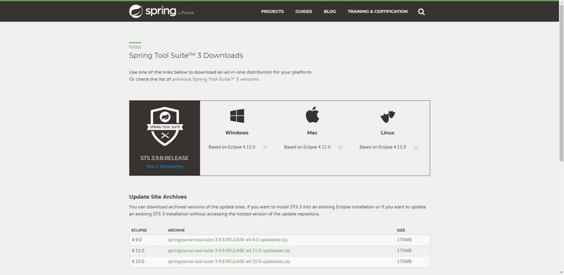 2.先下载tst插件,地址为https://spring.io/tools3/sts/all,然后选择和自己eclipse版本对应的STS插件版本。