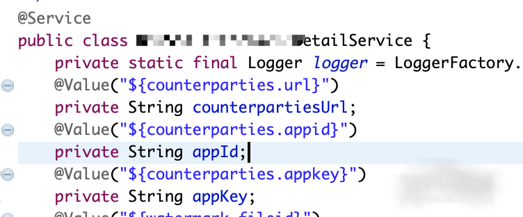 6、在需要使用的配置参数信息的类中,只要通过spring注解@Value("${xxx}")的方法注入到全局变量中即可读取配置文件中的参数。