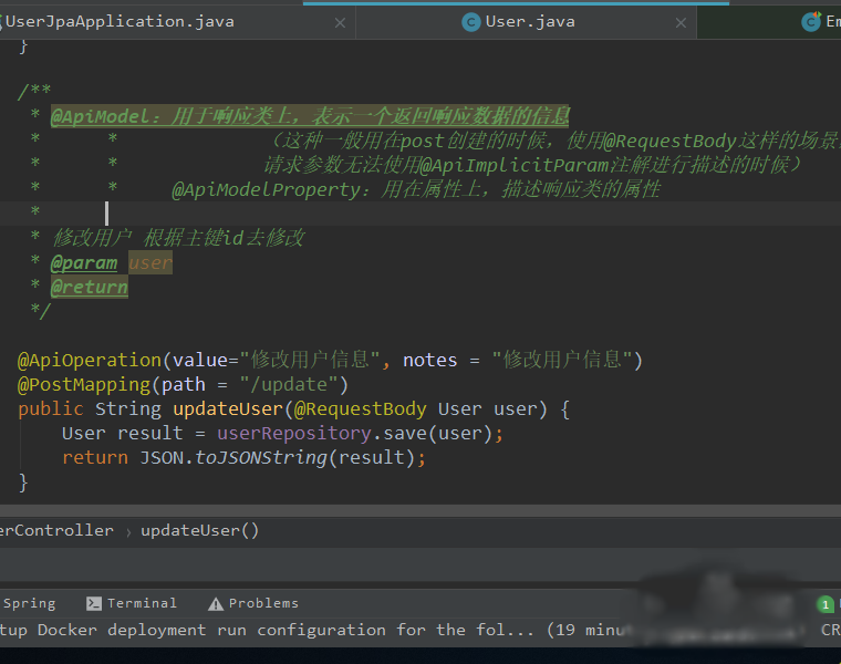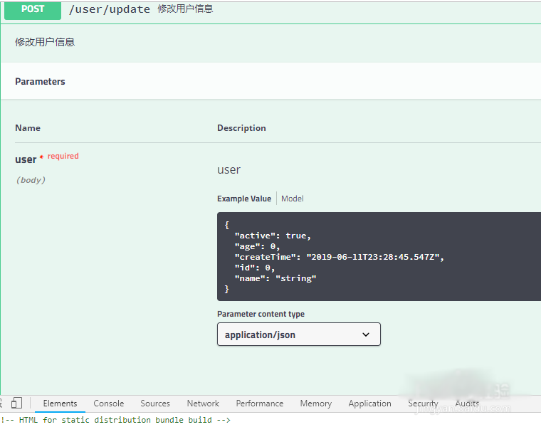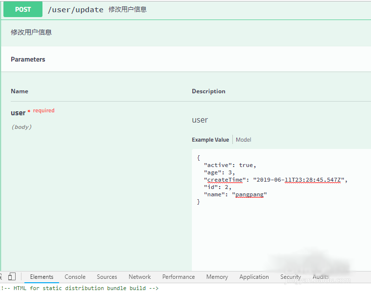 接下来我们执行update的接口,这是上面我们用实体类接收参数的方法,可以看到参数的例子,我们修改完参数值后执行即可。以上swagger2与springboot就集成完了。